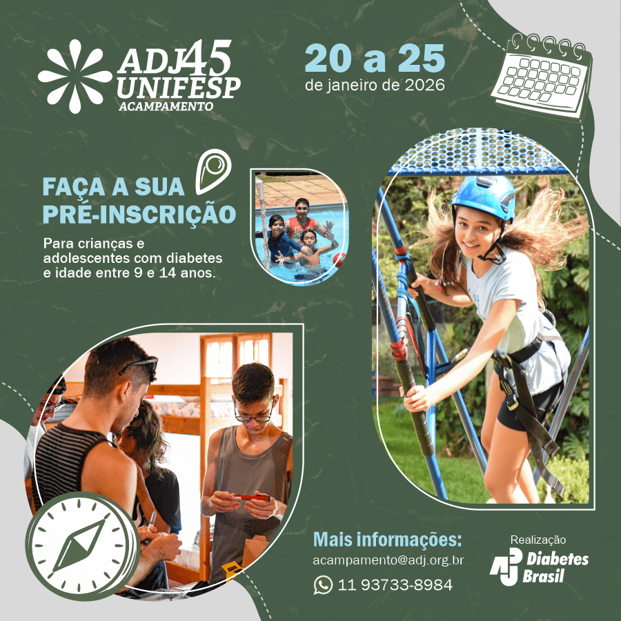 Estão abertas as pré-inscrições para o 45º Acampamento ADJ-Unifesp: 20 a 25/janeiro/2026.